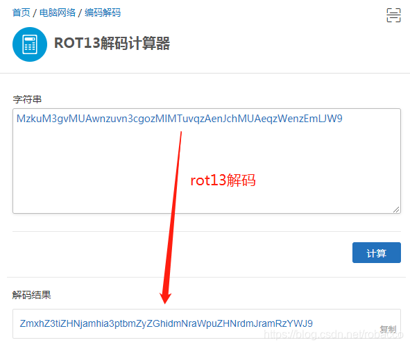 接着将解密后的MzkuM3gvMUAwnzuvn3cgozMlMTuvqzAenJchMUAeqzWenzEmLJW9使用rot-13工具(根据题目描述的“如来十三掌”)再一次进行解码,